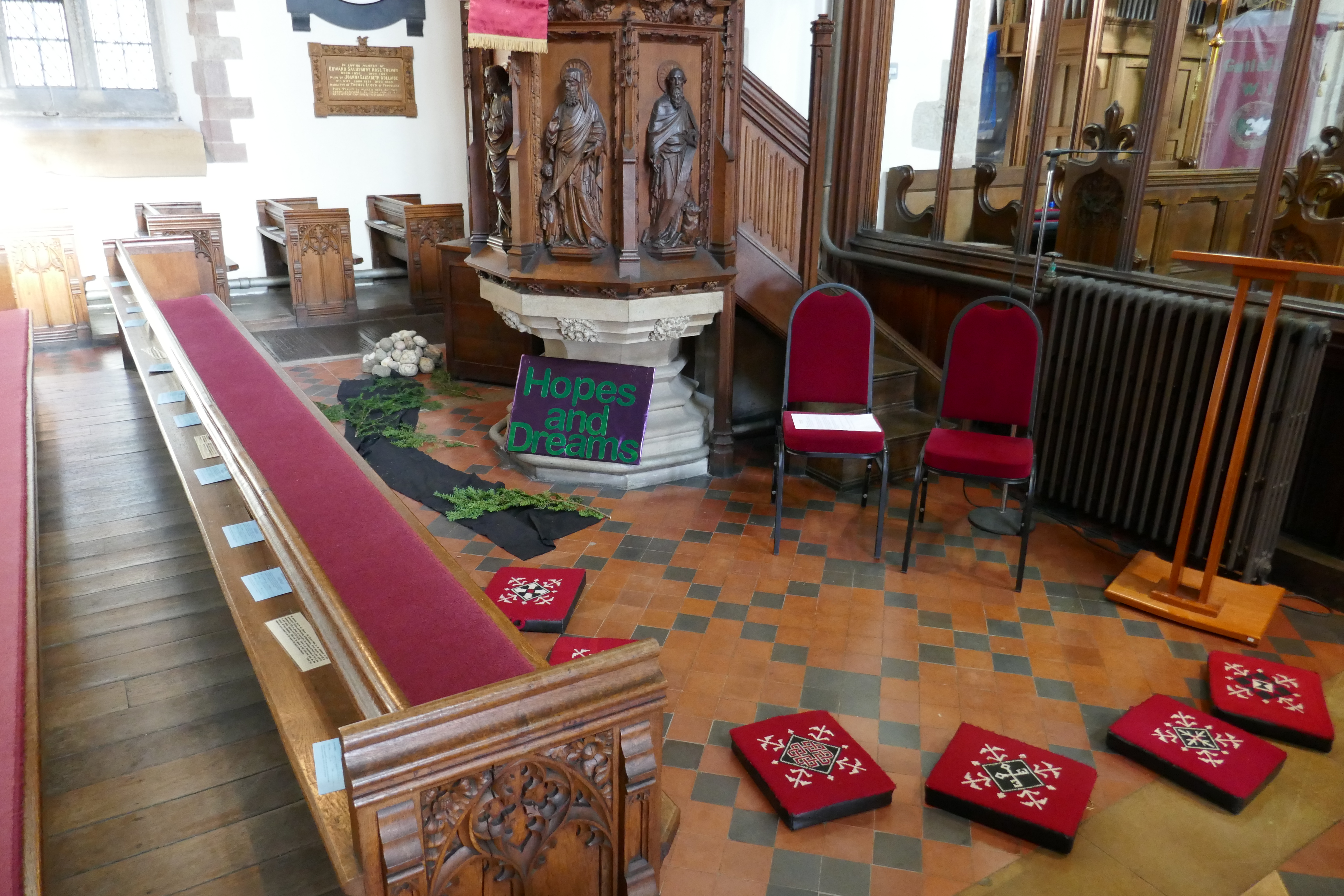 We shared the story with approximately 125 children ranging in age from 4 to 11 years old. At each station, the children responded actively to the things to do and reflect upon and generally seemed to enjoy the Experience. On leaving the church each of the children was offered an angel-shaped biscuit, which, needless to say, most of them took.